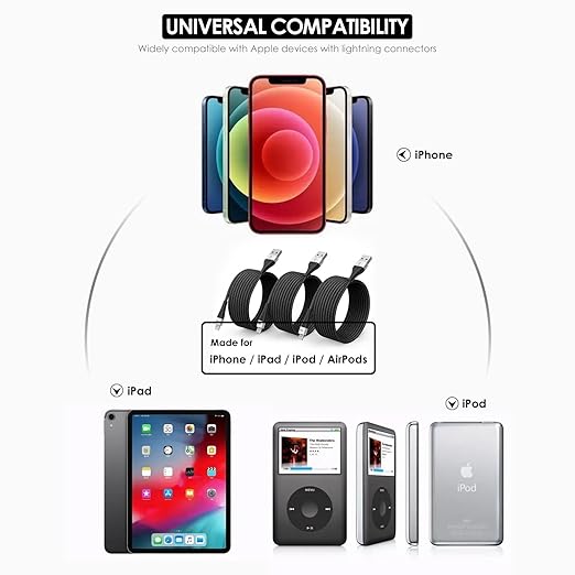 - Perfectly Compatible with Apple Devices: The 6 FT Apple charging cord is compatible with iPhone 14/ 14 pro Max /14 pro/14 Plus, iPhone 13 Pro Max/13 Pro/13 Mini, iPhone 12 Pro Max/12 Pro/12 / 12 Mini, iPhone 11 Pro Max/11 Pro/11, iPhone XS Max/XS/ XR / X, iPhone 8 / 8 Plus, iPhone 7/7 Plus, iPhone 6S Plus/6S/6 Plus/ 6, iPhone 5S/5C/5/SE, iPad/iPod/AirPods and more
