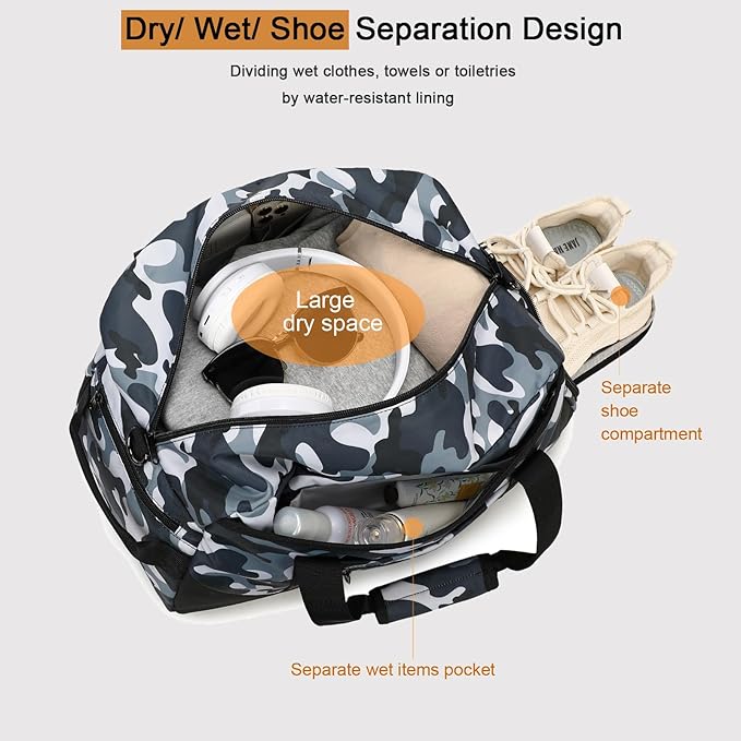 Octsky Overnight Bag Weekender Bag Sports Gym Travel Duffel Bag with Shoe Compartment, Camo Grey