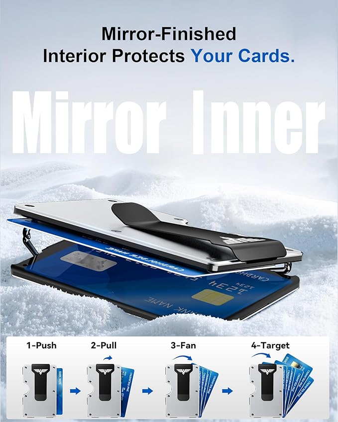 - Slim Wallet for Men: A slim mens money clip wallet, light metal cardholder for men, fashionable and convenient appearance. Flexible webbing greatly improved the card holding capacity, it convenient for card carrier.