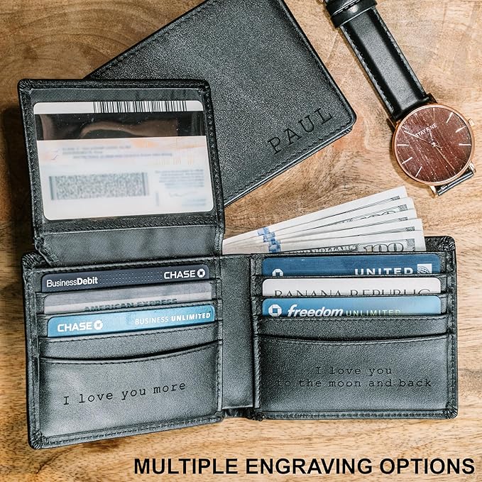 - Personalized Touch: Craft your unique wallet by adding a first name, last name initial, or inspiring words. Ideal for Father's Day, birthdays, weddings, and more. It's a daily treasure for your husband, dad, or boyfriend - a truly unique gift!