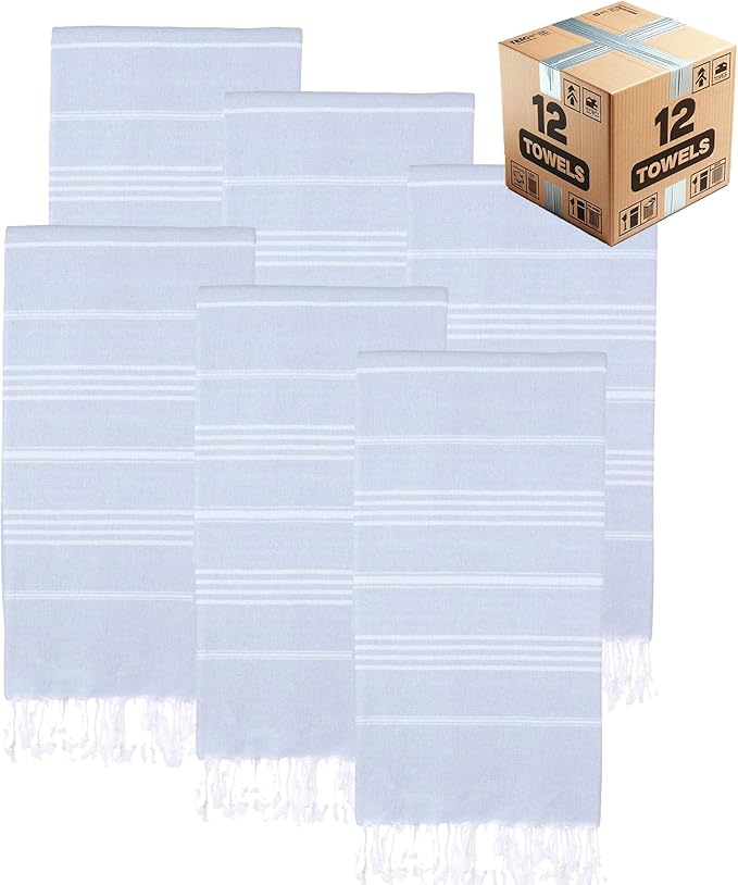 Turkish Beach Towels, Bulk Case of 12 | Oversized, Quick Dry, Sand Free | 100% Cotton, Large 38x71 Towels for Beach, Pool, Travel | Ultra-Soft, Compact, Absorbent | Baby Blue