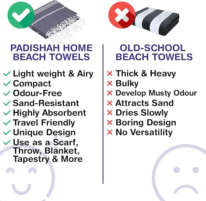 - TRAVEL LIGHT, DRY FAST: Elevate your travel experience with our refined Turkish towels. Thinner than standard terrycloth yet equally absorbent and astonishingly compact, they slide easily into any bag. Perfect for post-shower or beach use, our towels merge a space-saving design with reliable absorption, ensuring comfort during every adventure.