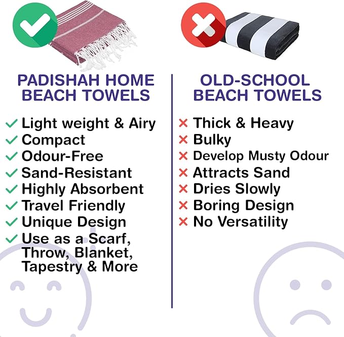 - VERSATILITY REDEFINED: Our towels transcend traditional boundaries. Crafted with a unique design, they effortlessly shed sand, making them ideal for a beach day, yoga session, or a stylish wrap. Available in 25 vibrant shades, these towels are not just an accessory but a statement.