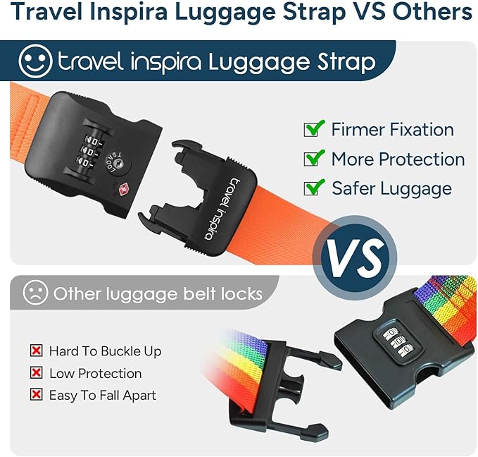 - Travel Hands-Free】 Travel Inspira luggage straps securely attach your personal belongings to the handles of your carry on or checked luggage, making your travel experience more hassle-free and enjoy your great trip. If you have any question about the the luggage straps in use, please feel free to contact us. We will reply you within 24 hours ASAP.