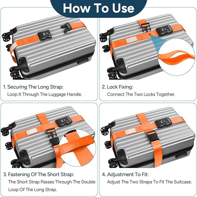 - 【Adjustable Length Luggage Straps】 Belt length: a. 47.2"-81.1" / 120-205 cm; b. 39.4"-73.6" / 100-187 cm; Luggage straps fit for 20” - 34” suitcase. Suitable for suitcase, luggage bag, backpack, duffel bag, etc. You can customize the length according to your needs, ensuring a secure and sung fit that prevents any sliding or loosening of the luggage.