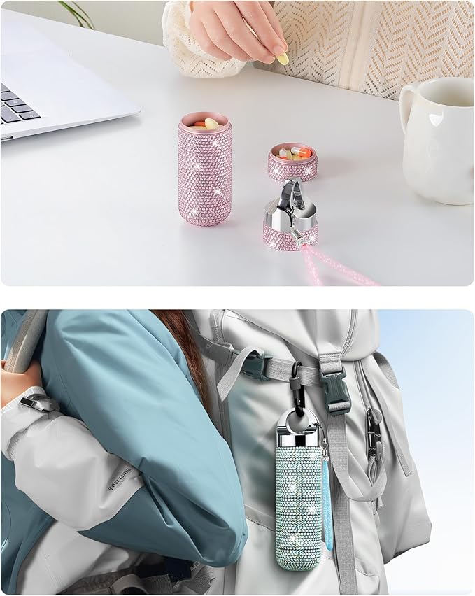 Zannaki Metal Bling Pill Organizer, Travel Waterproof Weekly Pill Box, Portable Large Aluminum Alloy Pill Case Container, BPA Free 7 Day Daily Medicine Organizer Holder for Vitamin,Fish Oil,Supplement