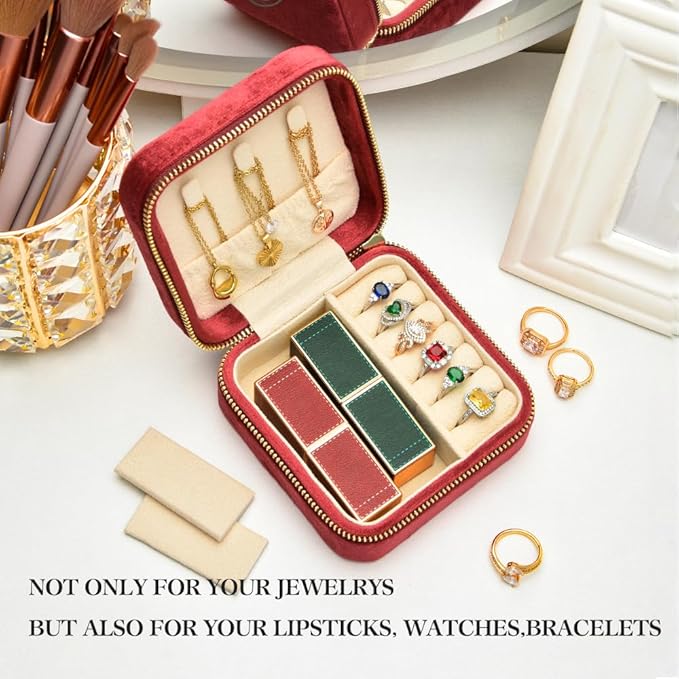 - PERFECT FOR TRAVEL: Size in 3.9*3.9*2inch(10*10*5cm),this small jewelry travel case is very suitable for daily use or travel, it does not take up space, can be placed on the dresser, or carry in the wallet, purse, handbag, bag, suitcase, etc. With the jewelry case, your jewelrys will be reached any time and any place.