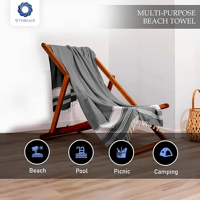 - 💧 Ultra-Absorbent & Lightweight Travel Towel: Designed for maximum functionality, 9Threads beach towels quickly absorb moisture while remaining incredibly lightweight and easy to carry. Whether you're drying off after a swim, wiping down after a workout, or relaxing at the spa, these fast-absorbing towels provide comfort without bulk. Their lightweight nature makes them ideal as a portable beach towel, gym towel, or travel towel for vacations and road trips.`