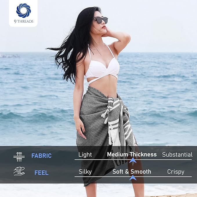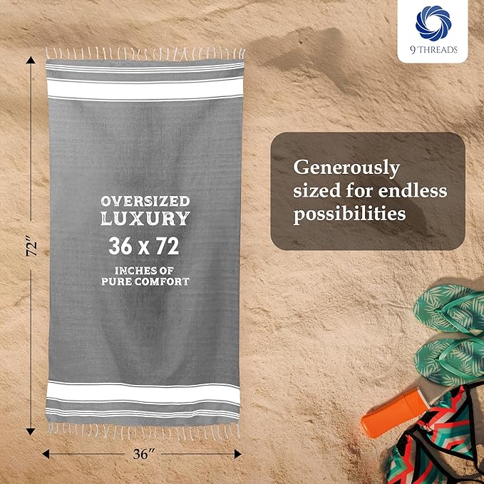 - ✨ Soft, Prewashed & Incredibly Versatile: Each 9Threads towel is prewashed for lasting softness and reduced shrinkage, offering a luxurious feel from day one. Designed for all-in-one functionality, it effortlessly transforms into a yoga towel, pool towel, sarong, picnic blanket, boho throw, or travel wrap—a stylish and practical essential for home, beach, gym, or on-the-go adventures.`