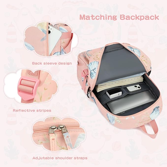 Somago 4 Piece Kid's Luggage with Backpack Set for Boys Girls Spinner 18" Hardside PC Rolling Carry on Suitcase with TSA Lock (Seashell Pink)