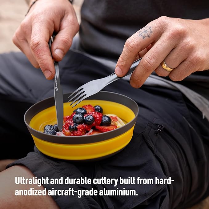 - Includes mini carabiner to keep utensils together; durable and easy-to-clean (anodized items should not be washed in a dishwasher), Spoon shape matches Frontier Bowls, so you will never miss a morsel; Sea to Summit Guarantee is offered for the lifetime of this product