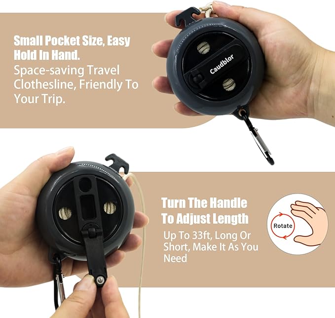 - 4 Adjustable Length- portable clothes drying line can be rotated into a roll, convenient and functional almost anywhere. Working well in camping, hiking, outdoor activity. Also do it on a backpacking travel, cruise, RV, beach, hotel trip, indoor.
