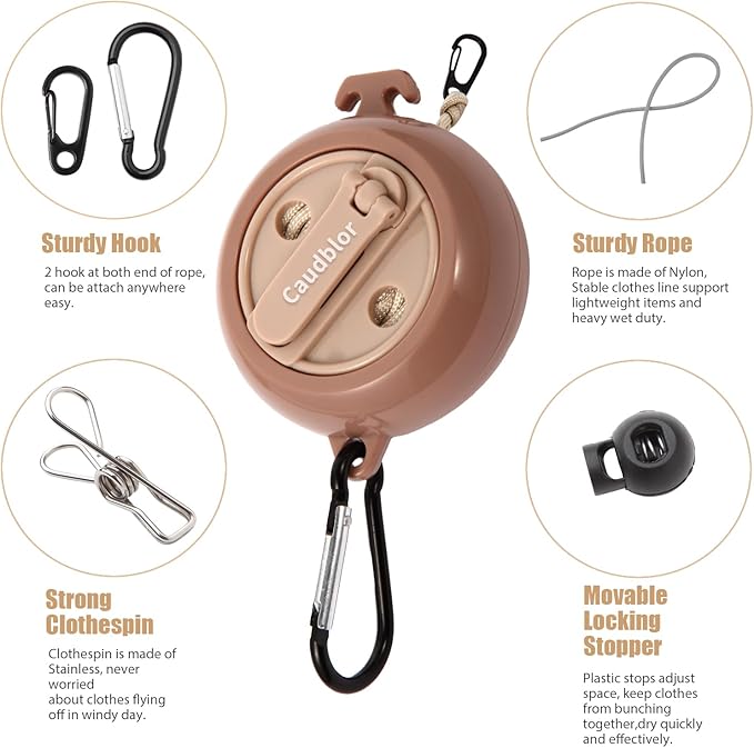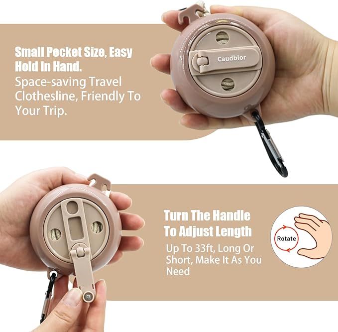 - 4 Adjustable Length- portable clothes drying line can be rotated into a roll, convenient and functional almost anywhere. Working well in camping, hiking, outdoor activity. Also do it on a backpacking travel, cruise, RV, beach, hotel trip, indoor.