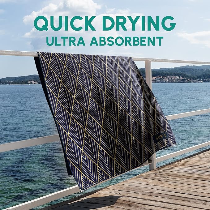 - QUICK DRYING & ULTRA ABSORBENT: With its ultra-absorbent fibers, this towel will effortlessly soak up all the water, ensuring that you're ready to go in a matter of minutes and dries an impressive 3x faster than standard cotton towels, making it a must-have for all your beach and poolside adventures.