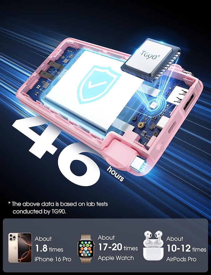 - Universal compatibility: There are 2ports and 2cables built-in battery pack, including multi-type cables for all kinds of smartphones It is widely compatible with 16/15/14/13/16Pro/15Pro/14Pro/16Pro Max/15Pro Max, etc, and most Android phones
