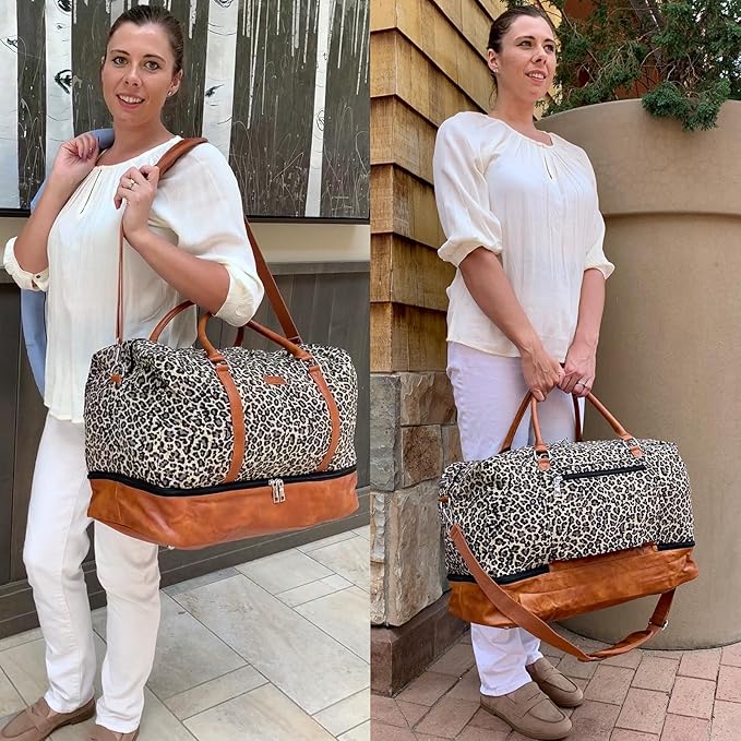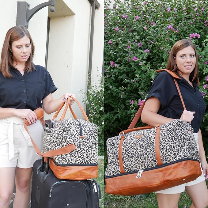 IBFUN Weekender Bags for Women, 21" Weekender Travel Bag, Travel Duffle Bag with Shoe Compartment Carry on Overnight Duffel Bag for Weekend Travel Business Trip