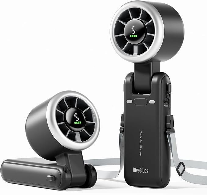 Diveblues Portable Handheld Turbo Fan, 5 Gear Wind, Battery Operated, Up to 12 Working Hours, 3 IN 1 Hand Fan with Air Turbo Tech Cooling Fan for Outdoor Activities, Travel, Working, Obsidian black