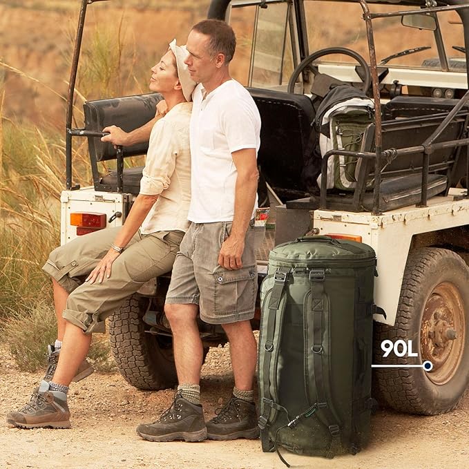 Haimont Large Duffle Backpack Bag for Men Travel, Heavy Duty Duffel Bags with Shoes Compartment for Long Trip, Camping, Water-resistant, 90L, Army Green