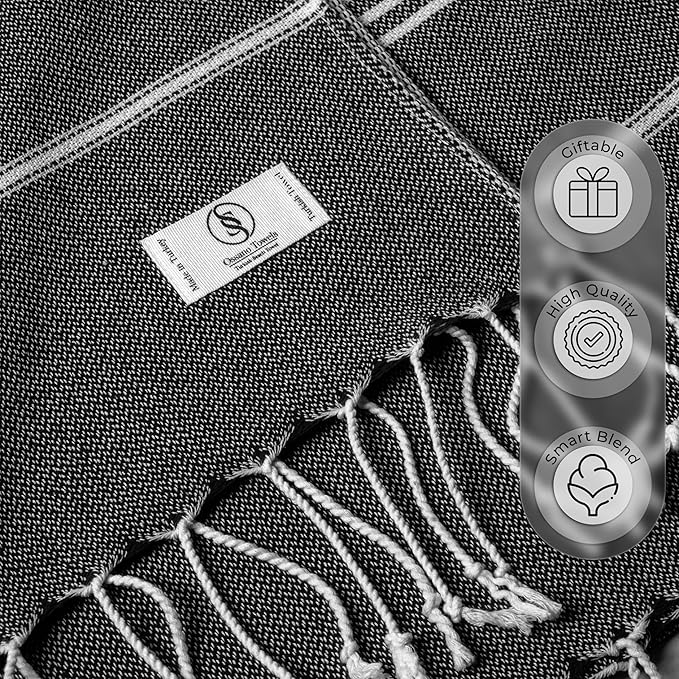 Turkish Beach Towel Absorbent & Quick Dry Oversized (39" x 71") - Decorative, Versatile and Functional as Yoga Mat, Beach Blanket, Bath, Travel, Airplane and Gym Towel - Black