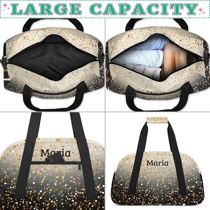 Personalized Kids Sports Duffel Bag with Name Custom Weekender Overnight Bag for Boys Girls Gym Bag Travel Dance Gymnastics Duffel Bag, Golden Glitter Black Shiny
