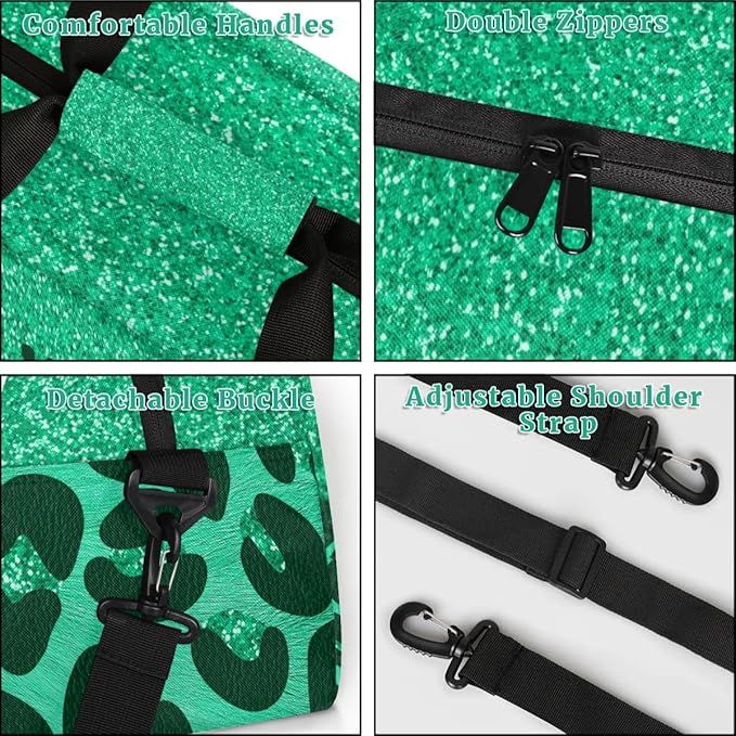 Personalized Kids Sports Duffel Bag with Name Custom Weekender Overnight Bag for Boys Girls Gym Bag Travel Dance Gymnastics Duffel Bag, Green Glitter Leopard Print