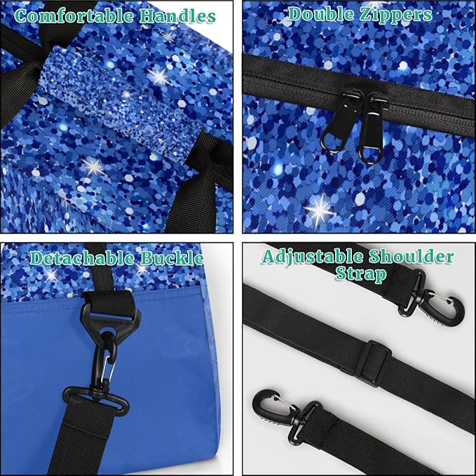 Personalized Kids Sports Duffel Bag with Name Custom Weekender Overnight Bag for Boys Girls Gym Bag Travel Dance Gymnastics Duffel Bag, Blue Glitter