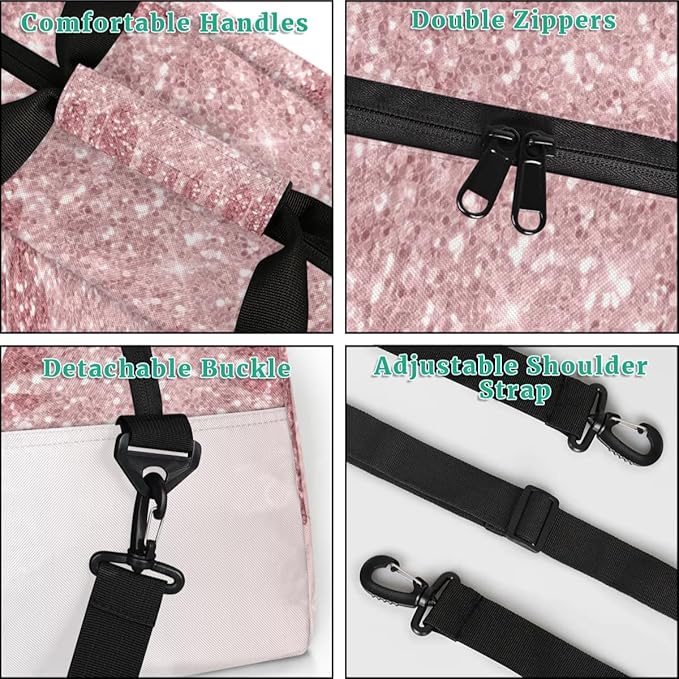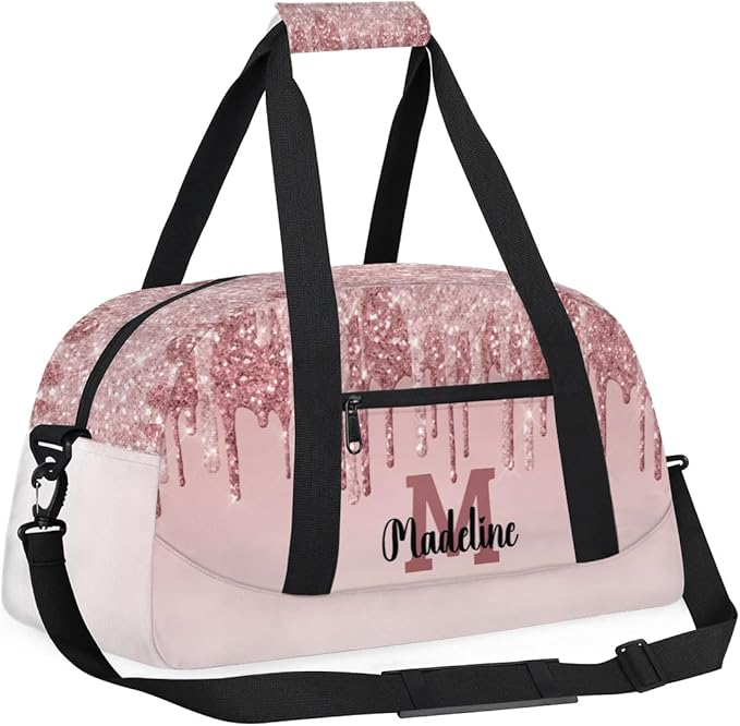 Personalized Kids Sports Duffel Bag with Name Custom Weekender Overnight Bag for Boys Girls Gym Bag Travel Dance Gymnastics Duffel Bag, Light Pink Glitter