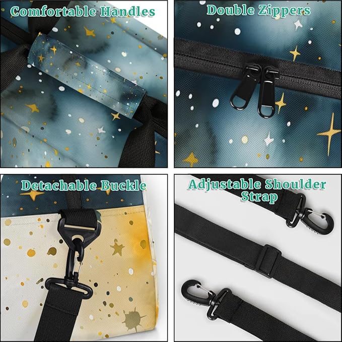 - 【WATERPROOF OVERNIGHT BAG】The personalized travel duffel bag is made of high-quality polyester fabric, which is waterproof and durable. It can protect items from damage caused by light rain or splashing. Our sports duffel bag also comes with an adjustable and detachable padded shoulder strap, which can be adjusted to the most comfortable state for use, reducing pressure.