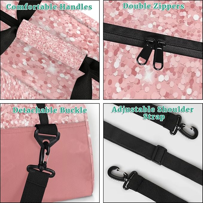 Personalized Kids Sports Duffel Bag with Name Custom Weekender Overnight Bag for Boys Girls Gym Bag Travel Dance Gymnastics Duffel Bag, Pink Glitter
