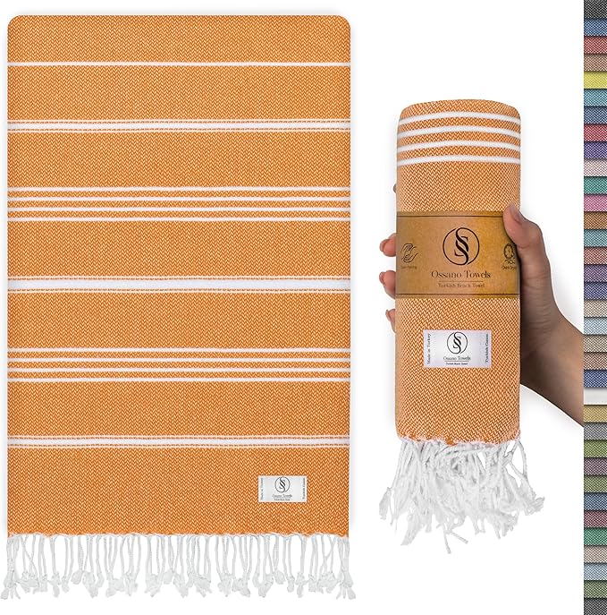 Turkish Beach Towel Striped & Smart Blend Oversized (39" x 71") - Quick Dry, Versatile and Functional as Picnic and Beach Blanket, Yoga, Pool, Travel and Gym Towels - Orange