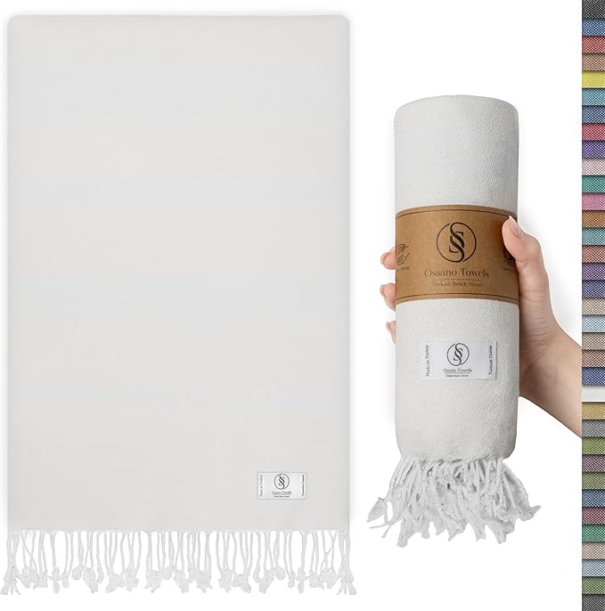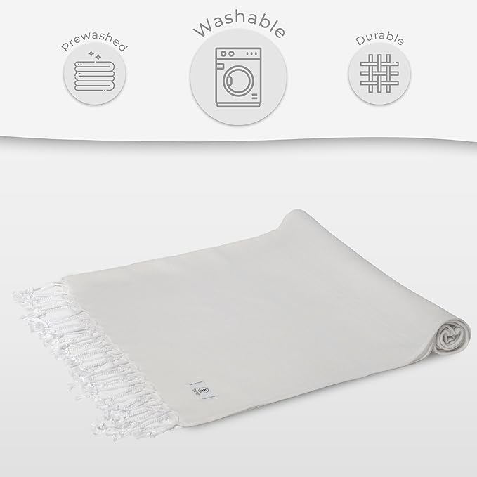 Turkish Beach Towel Absorbent & Quick Dry Oversized (39" x 71") - Decorative, Versatile and Functional as Beach Blanket, Yoga, Gym, Pool, Swim and Bath Towel - Ecru