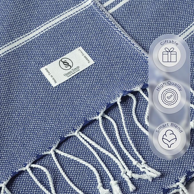 Turkish Beach Towel Compact & Soft Extra Large (39" x 71") - Quick Dry, Versatile and Functional as Yoga Mat, Picnic and Travel Blanket, Bath Towels/Vacation Essential - Indigo Blue
