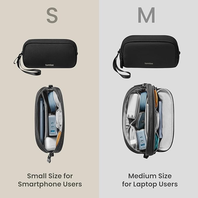 - Convenient & Portable: Designed for portability, the tomtoc tech and travel pouch keep your essentials organized and within reach, fitting seamlessly into a backpack, tote, or handbag, and can stand upright on a desk to grab items easily