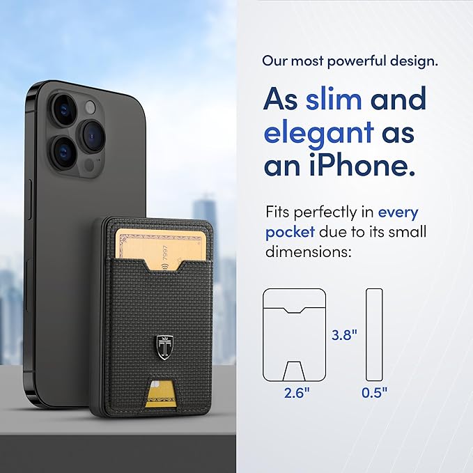 - 𝐌𝐈𝐍𝐈𝐌𝐀𝐋𝐈𝐒𝐓, 𝐘𝐄𝐓 𝐒𝐏𝐀𝐂𝐈𝐎𝐔𝐒 - This slim wallet for men holds up to 6-8 cards (depending on card thickness) and fits seamlessly into your jeans, suit pants, blazer or shorts pockets with its trim dimensions of only 3.8 x 2.6 x 0.5” and light weight of 3.79 oz. The elastic cash strap with an attached aluminum plate acts as a money clip, allowing you to hold folded bills securely on the backside of your credit card holder