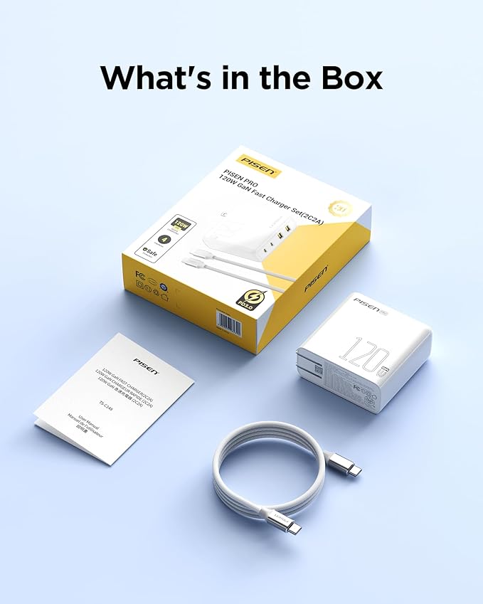 - [What's Included]: PISEN 120W USB C charger with 6FT USB C to C cable, instruction manual.