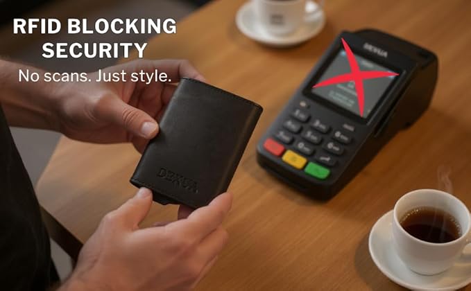 - RFID/NFC BLOCKING TECHNOLOGY: Dexua Istanbul RFID wallet offer advanced security for your cards. The built-in RFID blocking technology in this credit card holder ensures your information stays safe in a trifold leather wallet design.