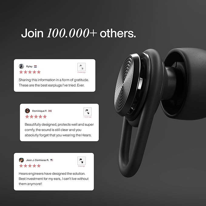 - Superior noise reduction: Hears earplugs offer 20dB (SNR) reduction, effectively eliminating damaging sound waves while maintaining crystal-clear audio quality for an immersive music experience.