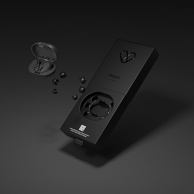 Hears Ear Plugs for Noise Protection - Patented Concert Earplugs, 20dB SNR Sound Reduction, Hypoallergenic Ear Plugs for Sleeping Noise Cancelling with 4 Ear Tip Sizes Included - Jet Black