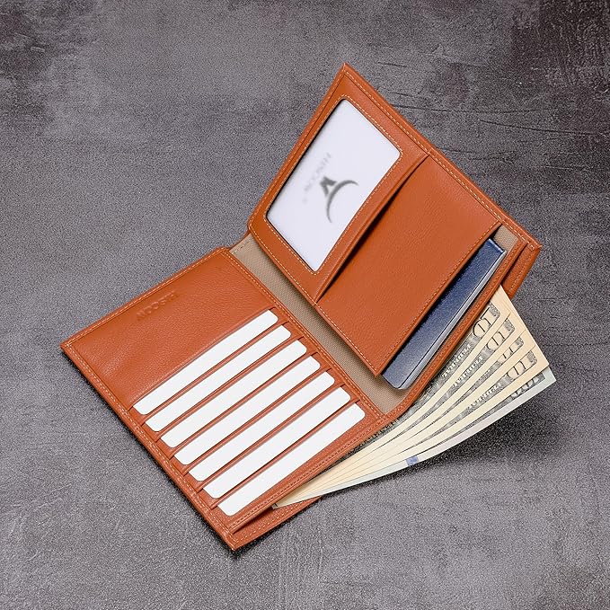 - Multi-Functional Design: Slim profile accommodates passports and paper bills; includes 1 large cash compartment, 7 card slots, and a clear ID window for quick access to travel essentials