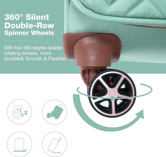 - Double Spinner Wheels: 360 ° Double-row mute wheels, mute and smooth multi-directional rotating wheels, and durable. And it's easy for a 360-degree rotation at random in various road conditions can effectively reduce the noise by lowering the friction while driving