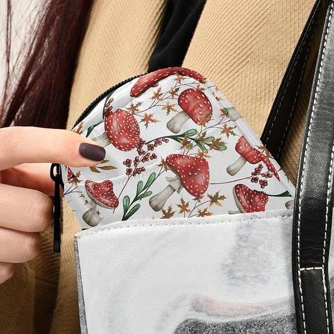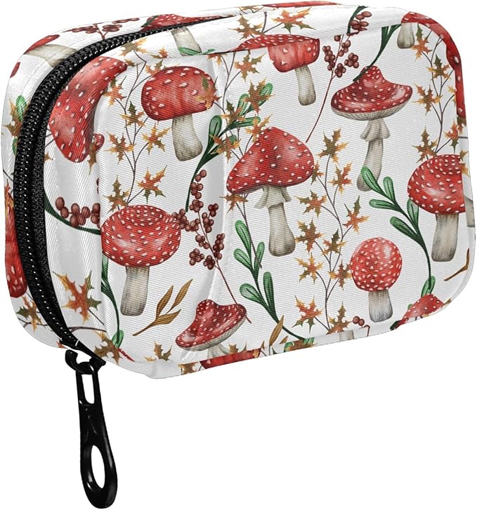 Fustylead Travel Pill Organizer Case Zipper for Purse with Removable Weekly Pill Box for Medicine, Vitamin, Supplement Medicine Organizer (Amanita Mushroom)