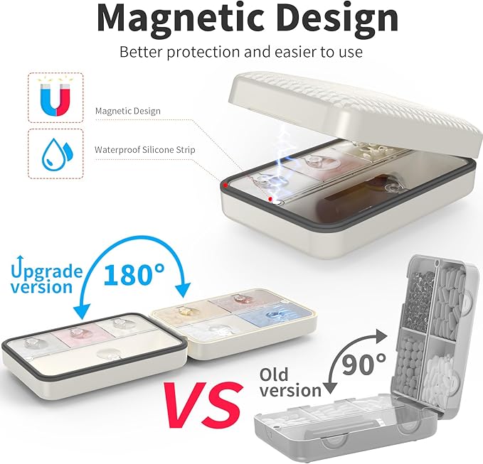 - ✅【Waterproof & Airtight Seal】- waterproof pill organizer - The built-in silicone ring offers reliable moisture-proof and airtight storage, ideal for travel or humid climates to keep medications fresh and secure.