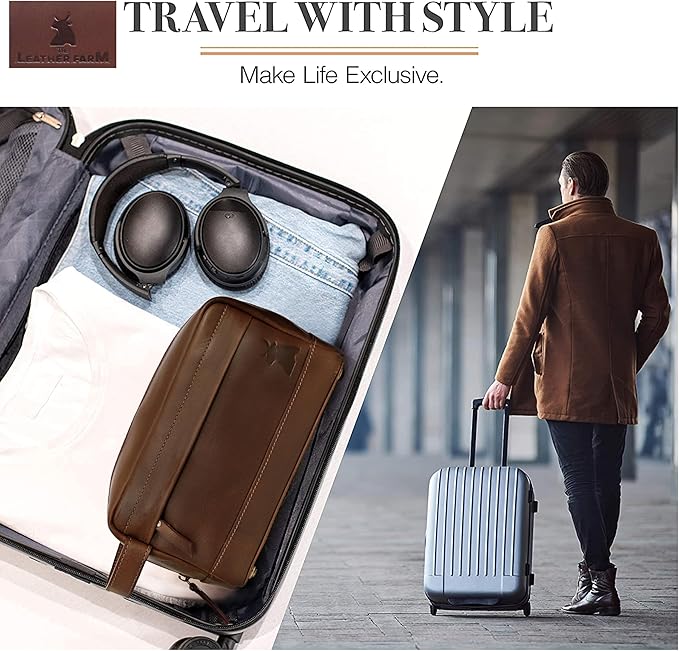 - COMPACT & PORTABLE MENS LEATHER TOILETRY BAG: Lightweight and easy-to-pack, this leather dopp kit bag men measures just right for duffels, gym bags, or overhead bins, without bulk. Ideal for frequent travelers seeking a mens toiletry bag leather that's both functional and stylish, it streamlines packing for business trips, vacations, or weekends away.