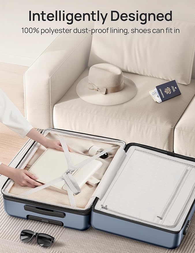 - 【TSA Lock Included】The built-in TSA-approved lock (default password: 0-0-0) ensures your belongings stay secure while allowing airport security to inspect your luggage without damage. Set your own password for added peace of mind.