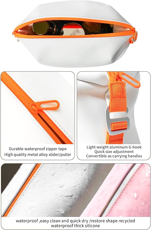 6"x 9.84" 4.5L Large Silicone Toiletry Bag,Waterproof Leakproof Foldable Travel Organizer,Dopp Kit Alternative for Men & Women,White