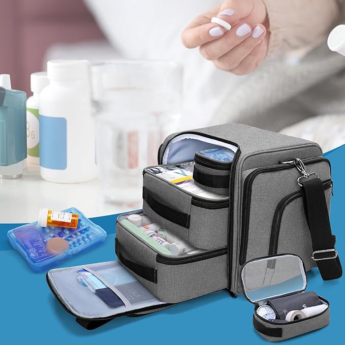BAFASO Large Pill Bottle Organizer with 4 Inner Removable Pouches, Medicine Bag Come with Shoulder Strap (Bag ONLY),Gray