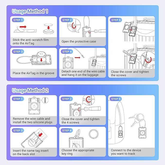 - 【Secure Design】 AirTag luggage holder is cleverly crafted with an allen key locking system and a durable 3mm thick braided wire cable design that keeps your AirTag safely inside the secure holder, so there's no need to worry about your AirTag holder slipping off