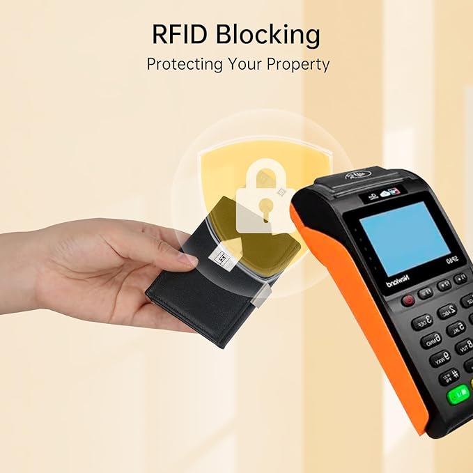 - 【RFID Safeguard】Advanced RFID blocking technology. Wallet embedded can block and interfere with commonly used 13.56mhz or higher shielded cards, which can prevent credit/debit/transportation cards etc. from being scanned by unknown devices, providing security for your belongings and data. Suitable for daily use in your pocket or bag, can be used to store ID card, work permit, transportation card, etc.