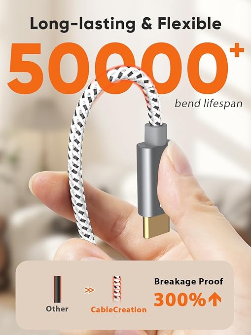 - Premium Material: The premium material used in the production of our CableCreation items, we tested with other items, and we are sure it provides a greater degree of cable durability, stability, and long life; The Nylon Braided Cord has passed 50000+ bends tests, and the Premium aluminum alloy shell and gold-plated connector add additional durability and stability to this cable, which makes it more reliable than normal cables, a must-have for daily use.