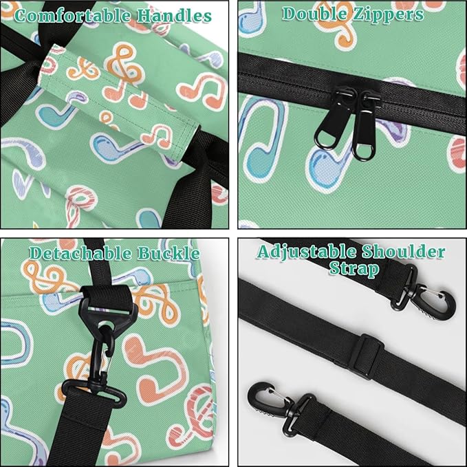 Personalized Duffel Bag for Kids Girls Boys, Dinosaur Guitar Custom Name Gym Bag Overnight with Padded Handles Carry On Weekend Sports Travel Bag for School Practice Gymnastics Ballet